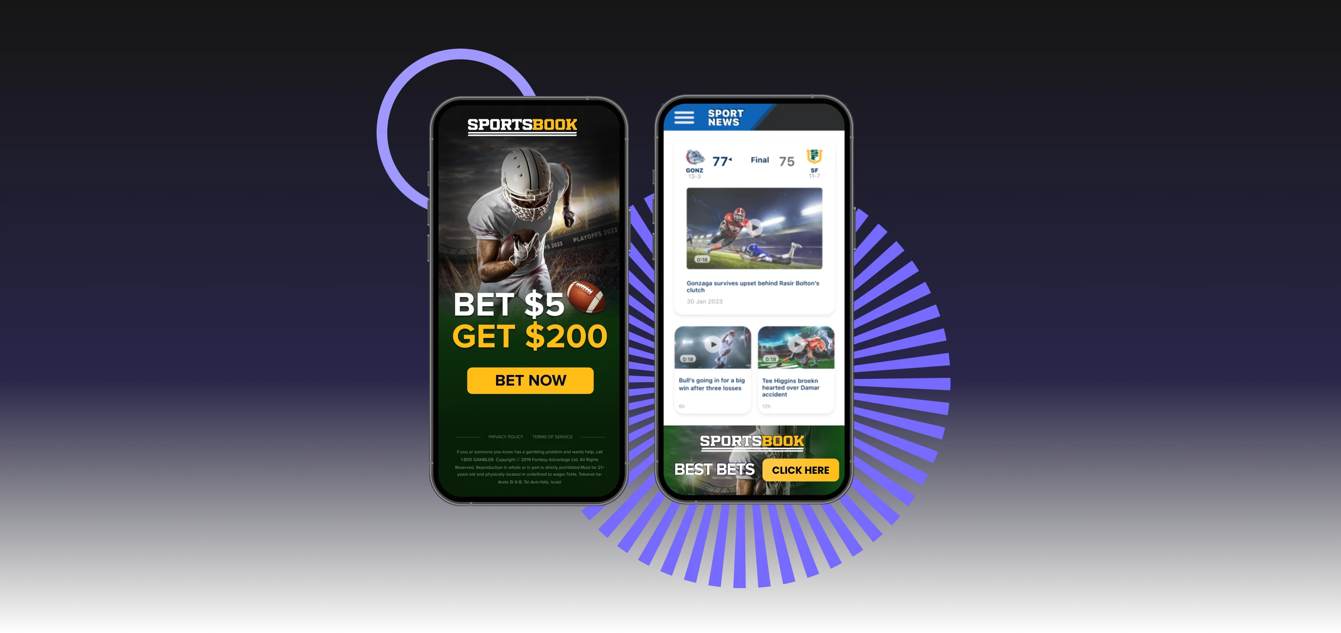We offer a variety of both direct and indirect inventory channels. These channels specialize in the iGaming, sports betting, and DFS spaces, with inventory available for mobile placement (both in-app and mobile web).